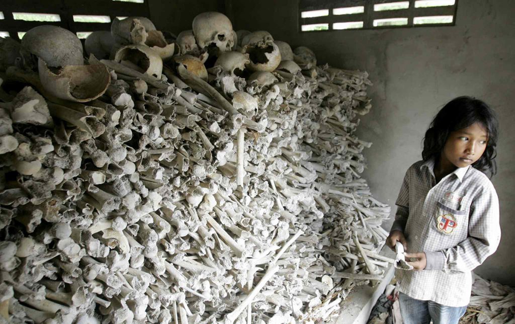 Tourists now visit graves and memorials to the over 150 Khmer Rouge “Killing Fields” as well as ancient wonders like Angkor Wat. In addition to political opponents, those unable to do farm work in the fields were marked for execution. Approximately 60% of the deaths during the genocide were by direct execution and the remaining victims died from disease or starvation. There were more than 20,000 mass graves containing the bodies and bones of nearly a million and a half victims. The term “Killing Fields” was coined by a Cambodian journalist, Dith Pran, who managed to escape. His experiences and those of an American journalist, Sydney Schanberg, were the basis for a 1984 British film, The Killing Fields. The film was nominated for and won several Academy Awards.
